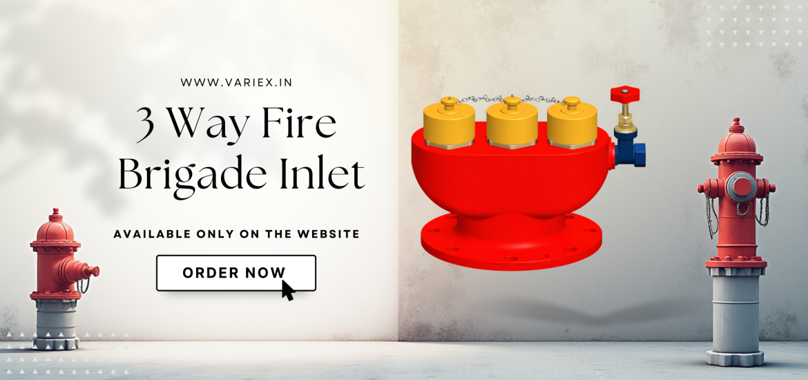 VariEX Fire Brigade Inlet (Pumping in Breech), having a cast iron body with 3 Nos, 63 mm size SS male instantaneous inlets (with NRV) and 80 mm size flanged outlet, suitable for connection to dry riser piping. Additionally, the inlet includes a drain valve to remove water after operation, keeping the system ready for the next use.