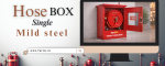 Hose box single provides the means to store delivery. Hoses and branches in indoor and outdoor locations. They protect the hoses/branches from the effects of weather, dust, etc., and allow quick deployment of the same in the event of emergency. Hose boxes can be mounted on the wall or, if outdoors, on specially fabricated stands.